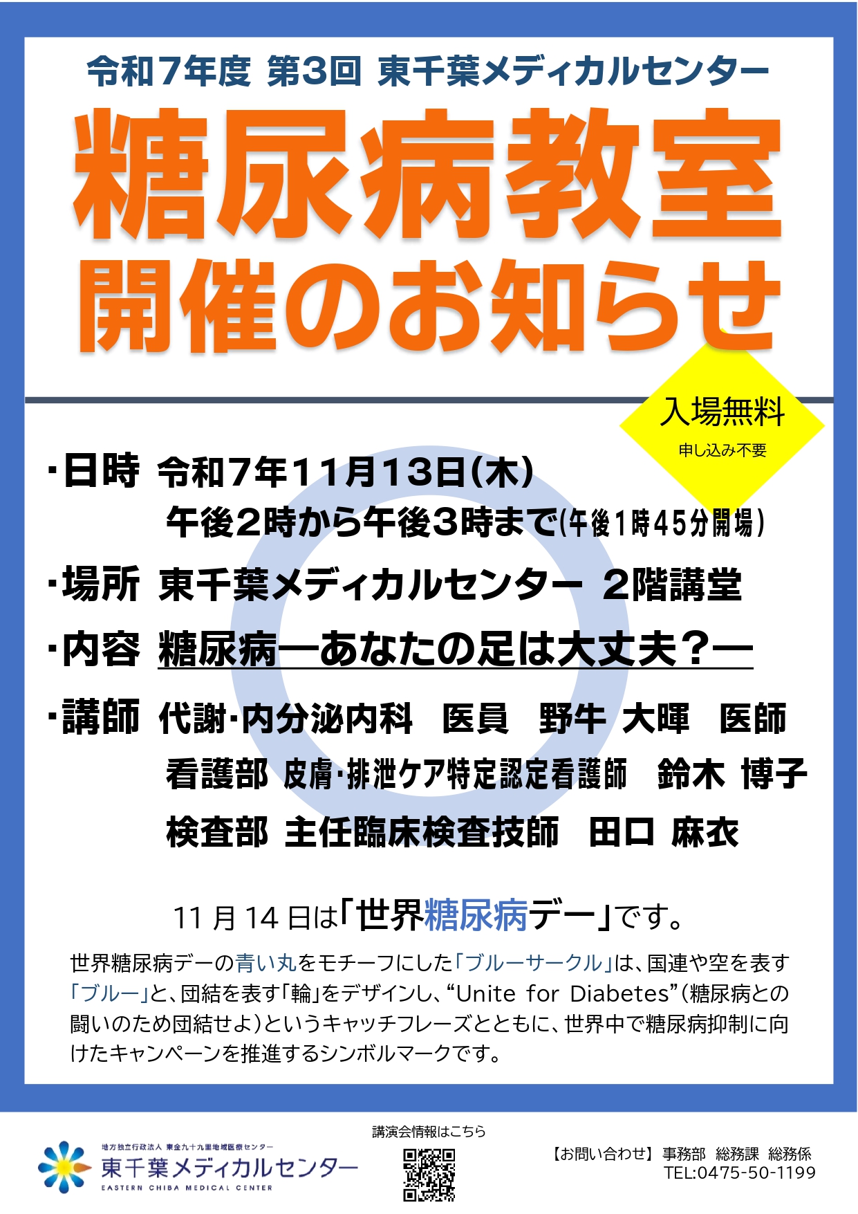 世界糖尿病デーである11月14日を含む1週間は「全国糖尿病週間(ダイアベティスウィーク)」です。