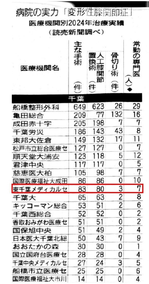 読売新聞「病院の実力 変形性膝関節症 千葉編」に診療実績のある医療機関として「東千葉メディカルセンター」が掲載されました。